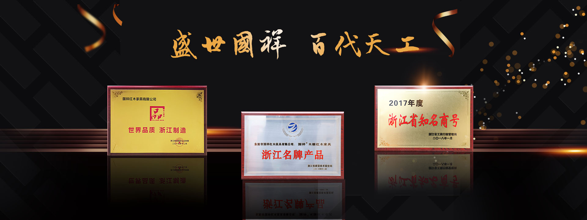 在多年的發展歷程中,國祥紅木憑借卓越的產品品質和服務質量,先后榮獲了紅木家具十大影響力品牌、浙江省知名商號、浙江省名牌產品 、浙江省林業重點龍頭企業、浙江省消費者信得過單位 、浙江省家具行業先進企業、東陽市木雕紅木家具骨干企業、中國紅木老品牌、東陽市木雕紅木家具骨干企業、東陽市木雕紅木家具十大精品企業等眾多榮譽,用實力詮釋了老字號品牌的活力。